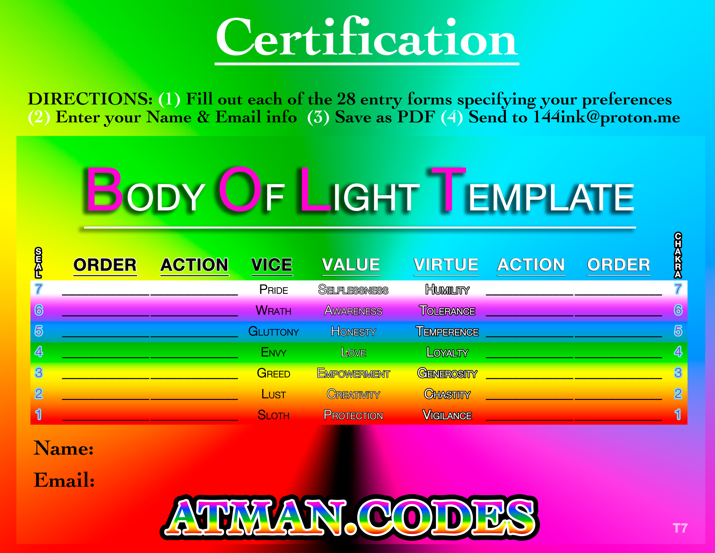 Certification involves either agreeing or augmenting our BOLT (Body of Light Template) to bring more transparency to our communal values & “call each other in” instead of calling each other out. You can either “Agree & Adpot” or “Refine & Define” to be added to our public directory. Post a link to your website to indicate your connection to this worldwide and individual process of activating our inner / outer bodies of light.